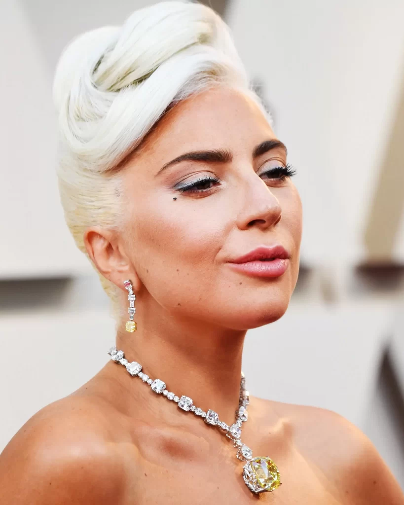 Almost sixty years later, at the 91st Academy Awards, Lady Gaga revived the diamond’s legend, pairing it with a sculptural black Alexander McQueen gown and leather opera gloves, reminding the world that sophistication can still shock.