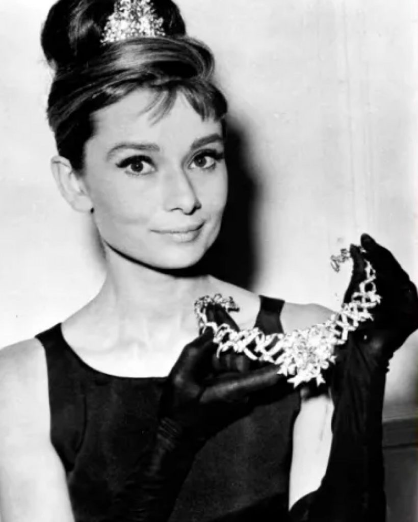 In 1961, Audrey Hepburn wore it in the promotional images for Breakfast at Tiffany’s, redefining elegance for generations.